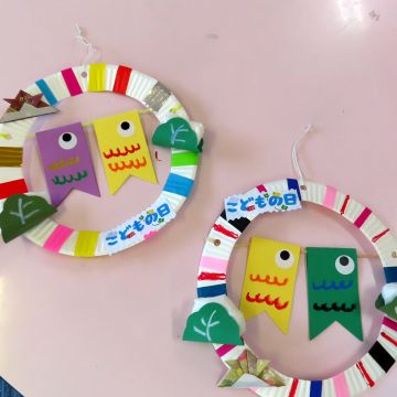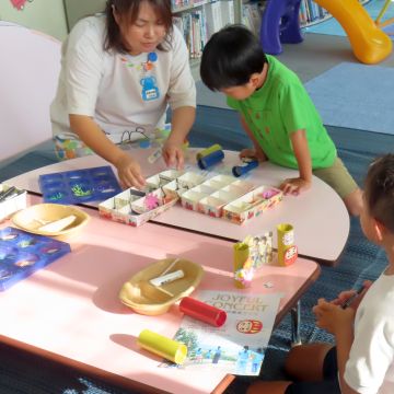 親子で色を楽しもうでは、折り紙やクレパスを使って交流しました