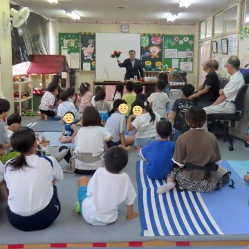 小板さんの腹話術&マジックショー、入園おめでとうの記念品プレゼント
