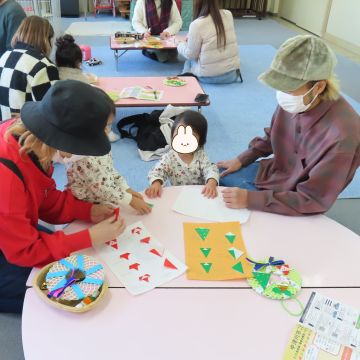 親子で色を楽しもうでは、折り紙やクレパスを使って交流しました