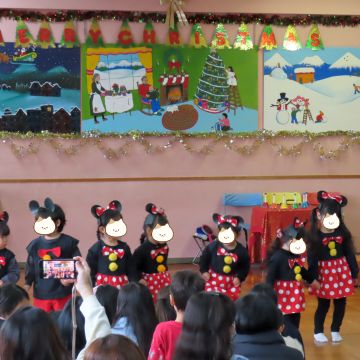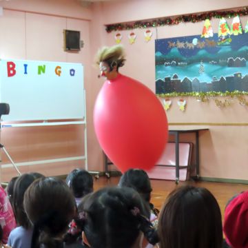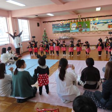 12月クリスマス会 クラウンとっぽクリスマスパフォーマンスショー ゾウさんクラブミッキー&ミニー踊り ビンゴ大会