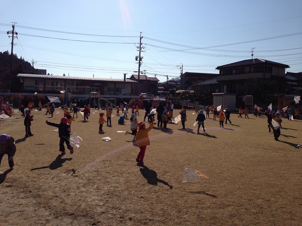 全園児たこを制作しました。今日は天気が良かったのでみんなでたこ揚げをしました。