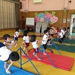 今は鉄棒に挑戦中です。前回りや逆上がりも果敢に練習しています。
