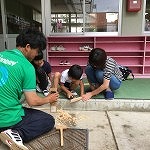 今日は年長組の参観日を行いました。親子で木馬を作りに挑戦しました。