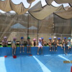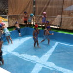 プールに入りたかった年中組さんは、砂場に大きなプールを作って遊んでいましたよ!