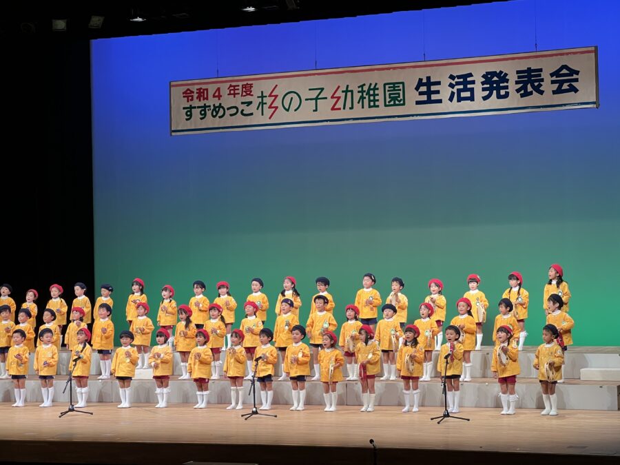 全園児、園庭に集まり発表会ごっこが始まりました。