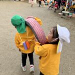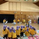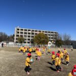 お友だちと手を繋いで行う円サッカーは、難しかったけれどみんなで協力して最後まで頑張れました。