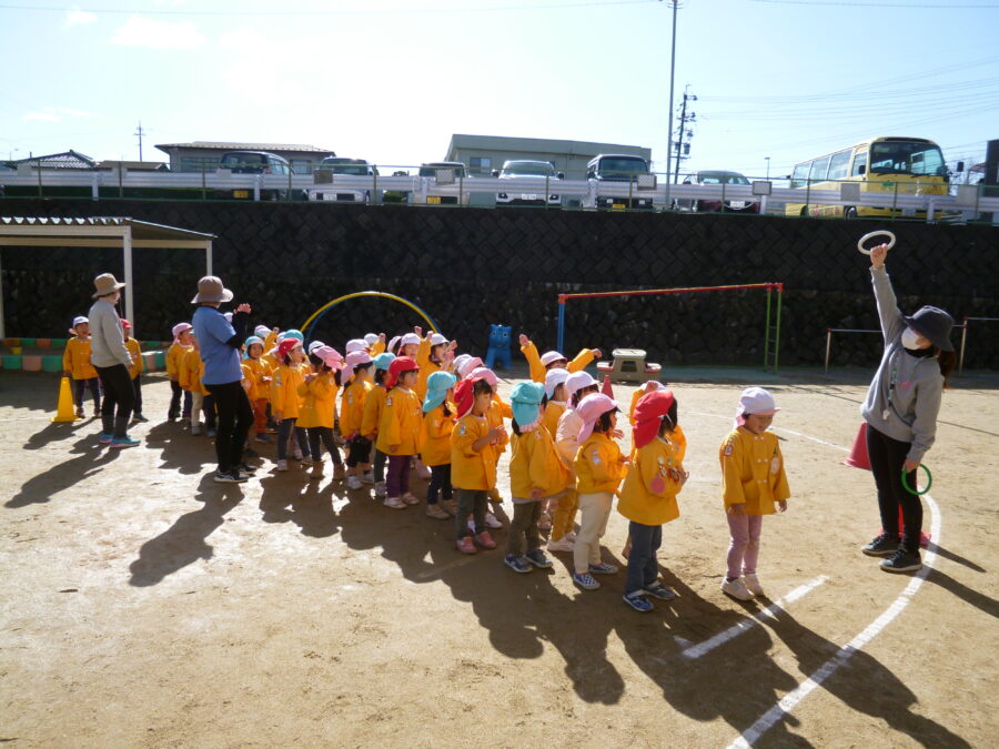 今日は、みんなで体操して、リレーやしっぽ取りをして遊びました!
