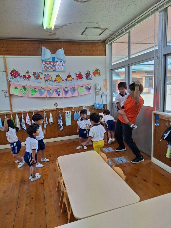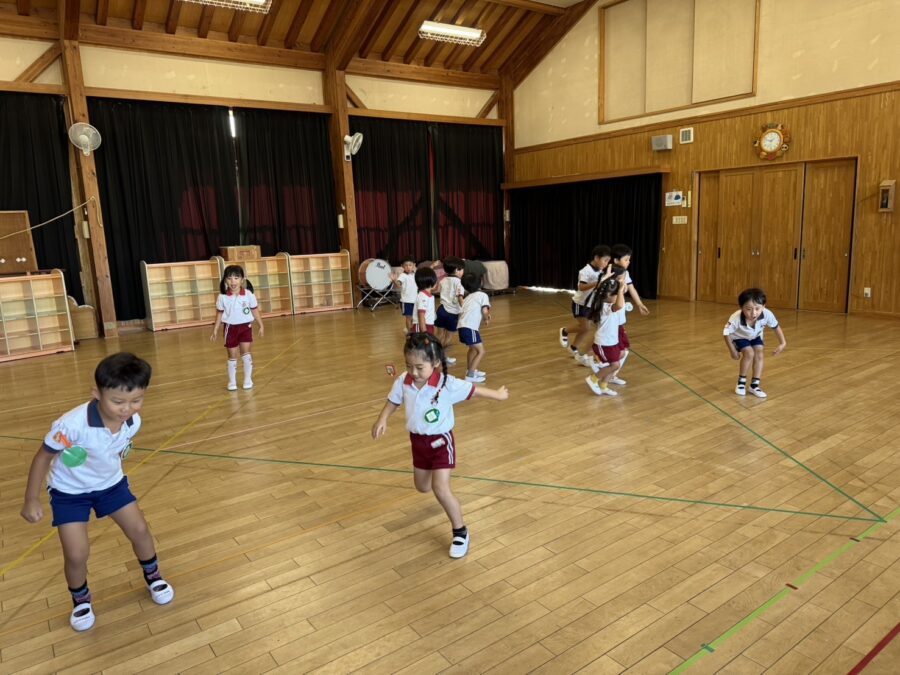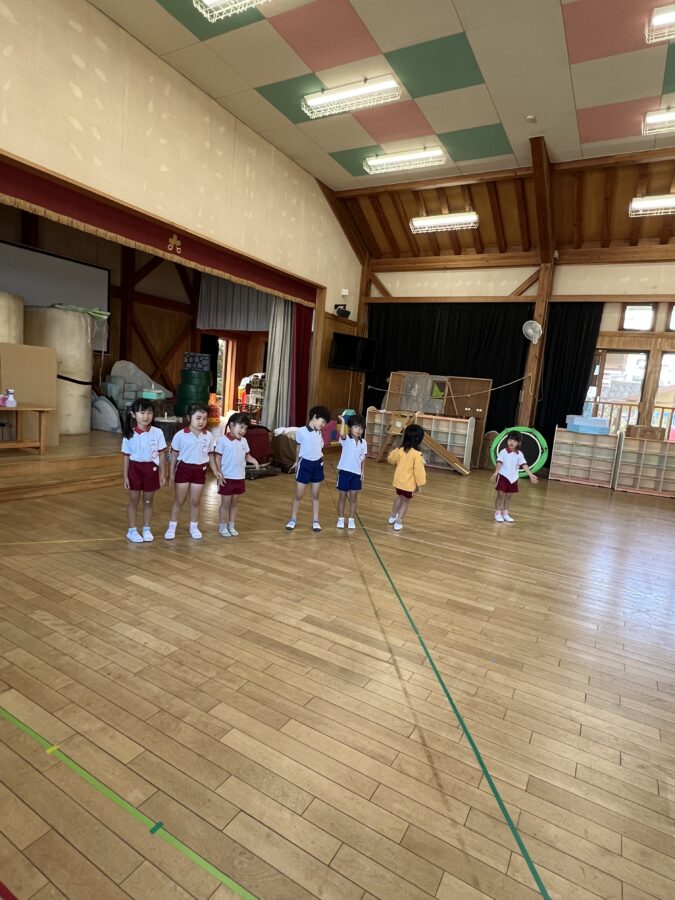 天気の良い日にはみんなで朝の会をしたり、体操をしたり身体をいっぱい動かして遊んでいます☆