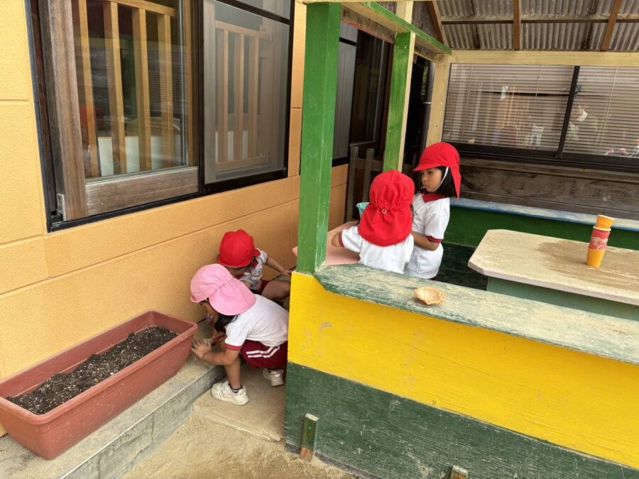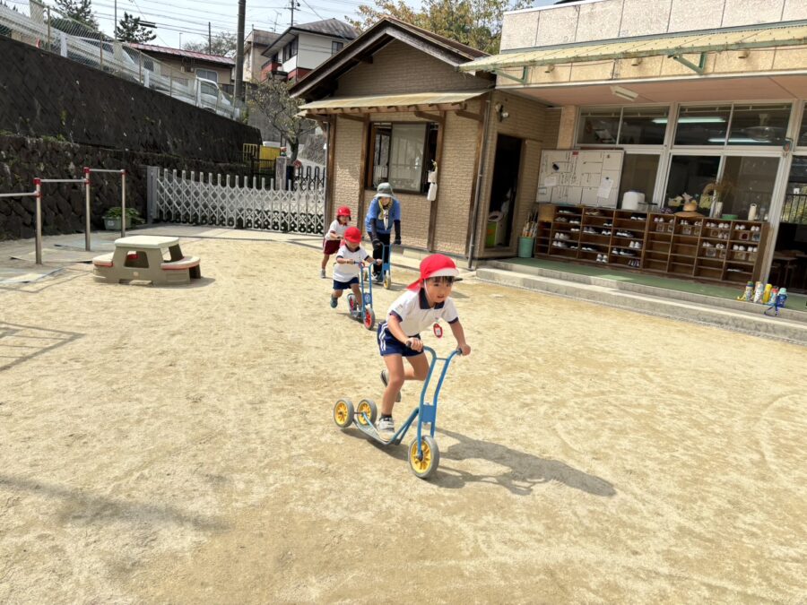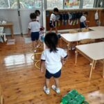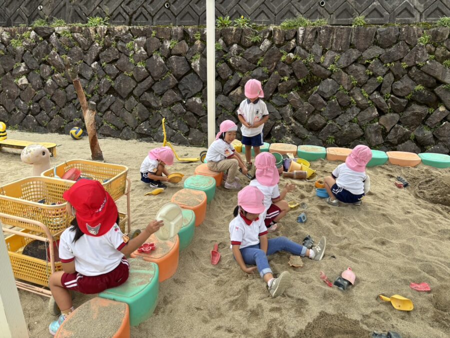 同じ色のクラス帽子が固まって遊ぶ姿がたくさんあり、集団遊びも楽しめるようになってきました!