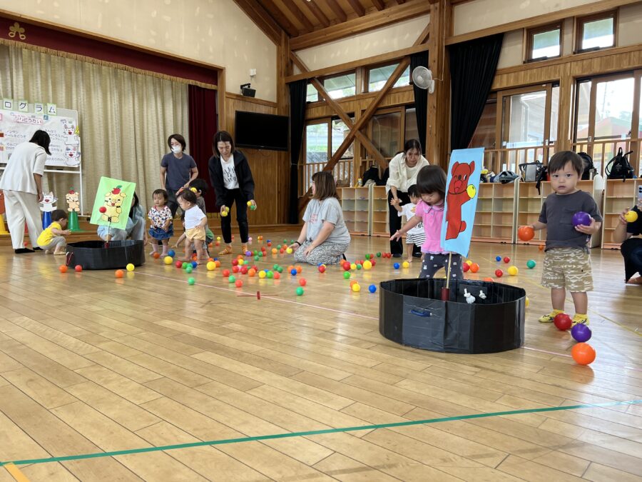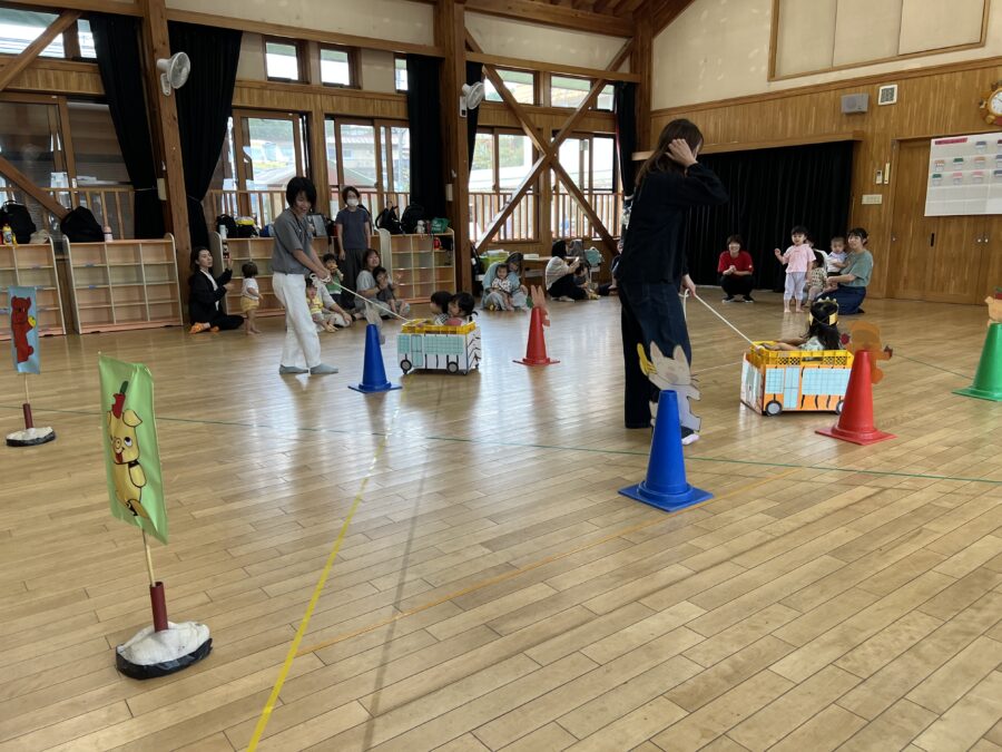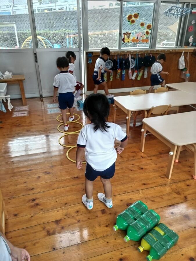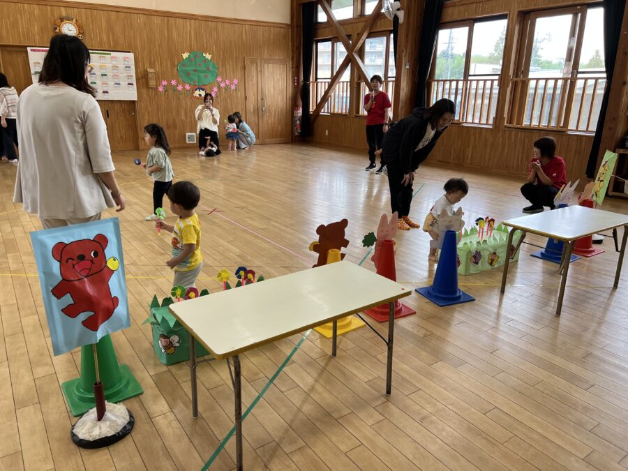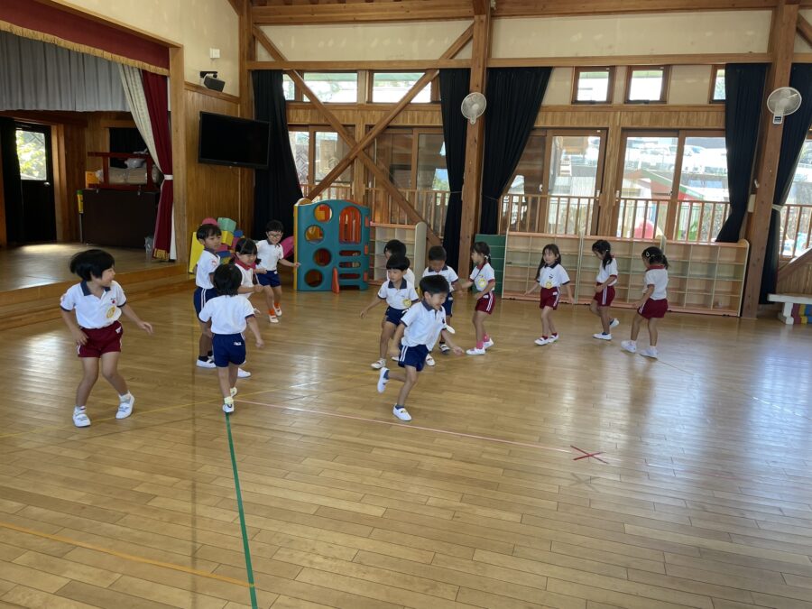 今日は園の遊戯室でりすぐみの運動会が行われました。