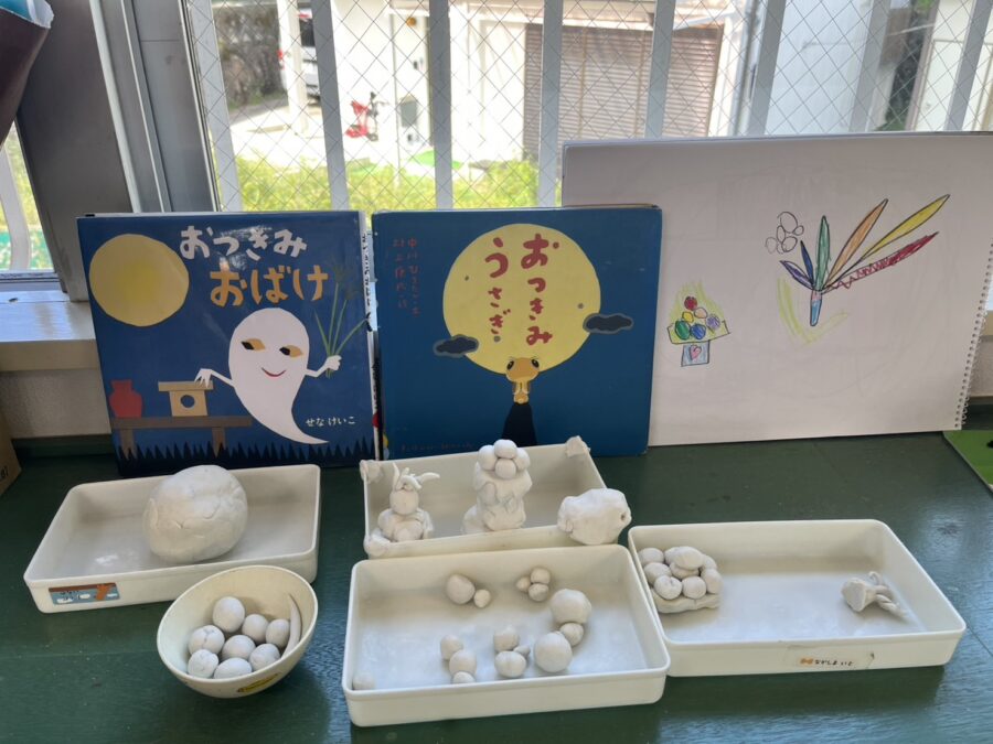 今日は「中秋の名月」10月に入り、お月見にちなんだお話をどのクラスも聞いたり、お団子を作って供えたり・・・