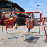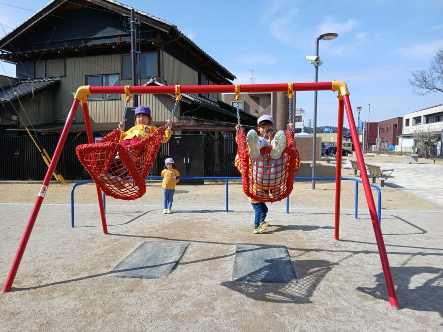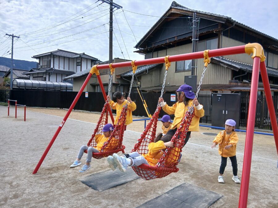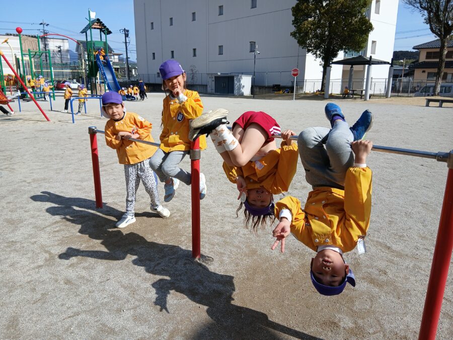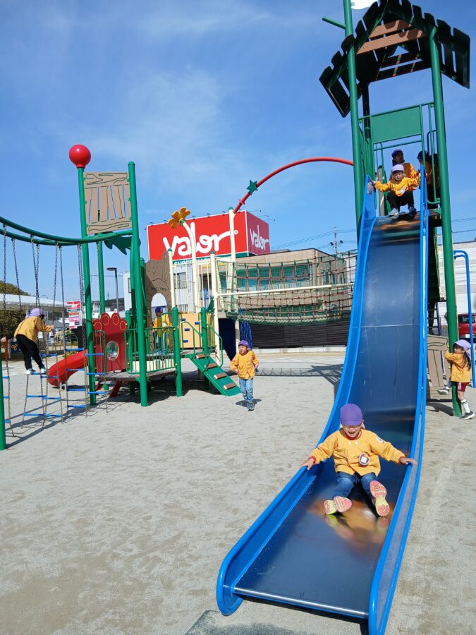公園の遊具でたくさん遊び、笑顔いっぱいの子どもたち。