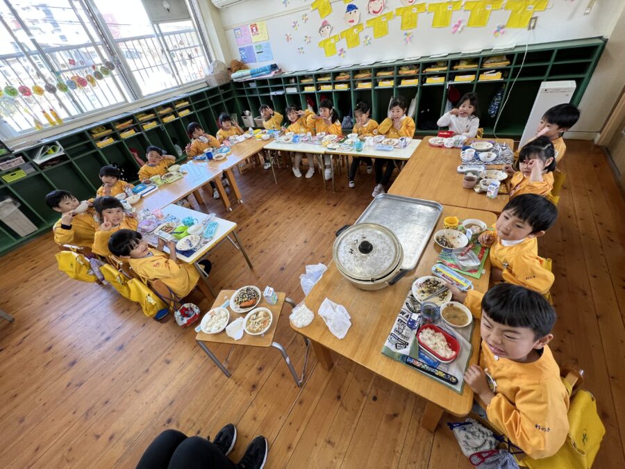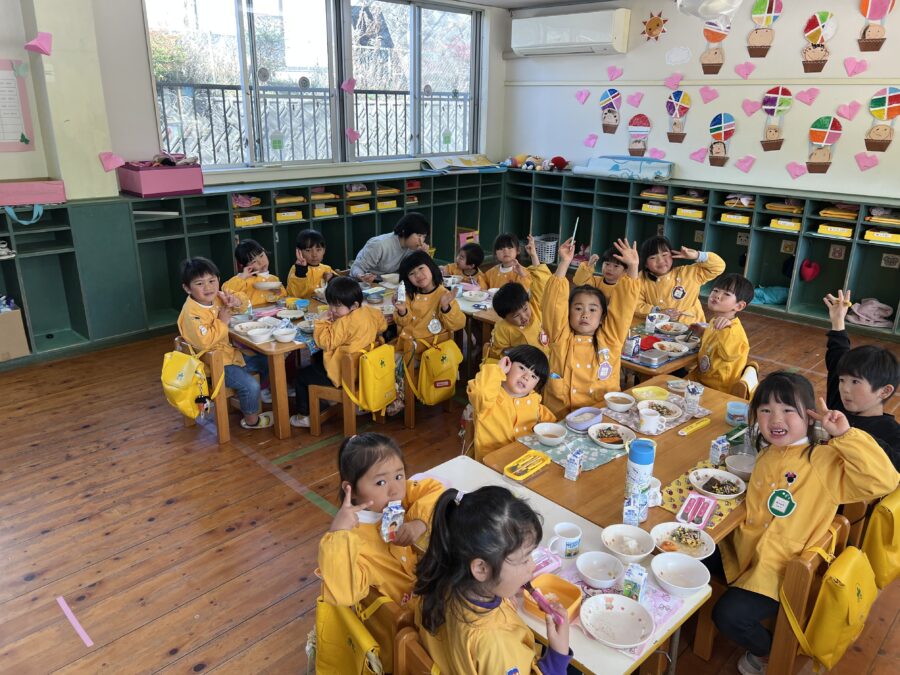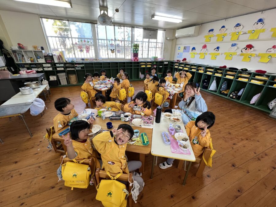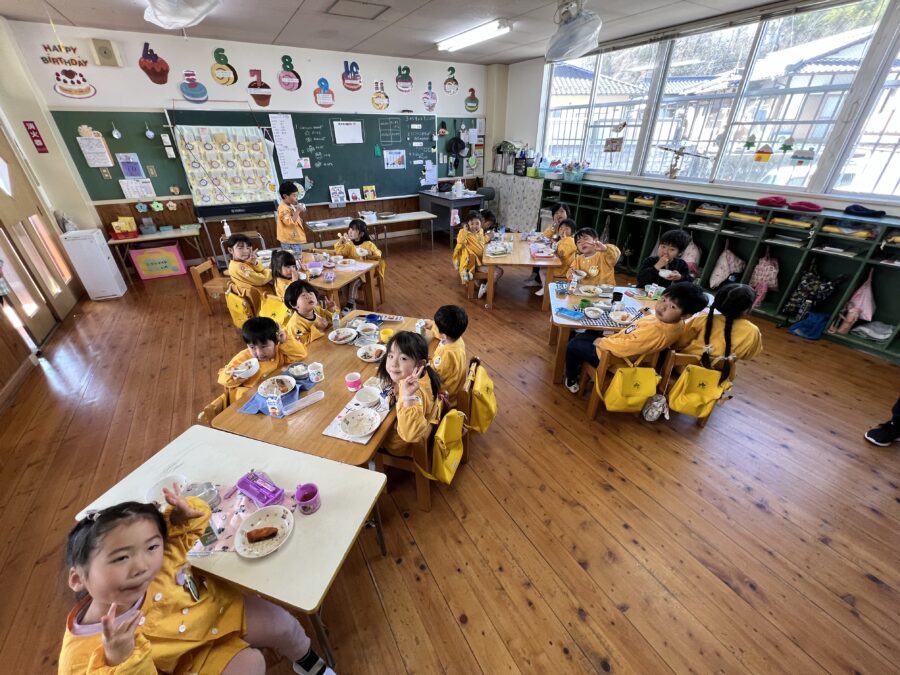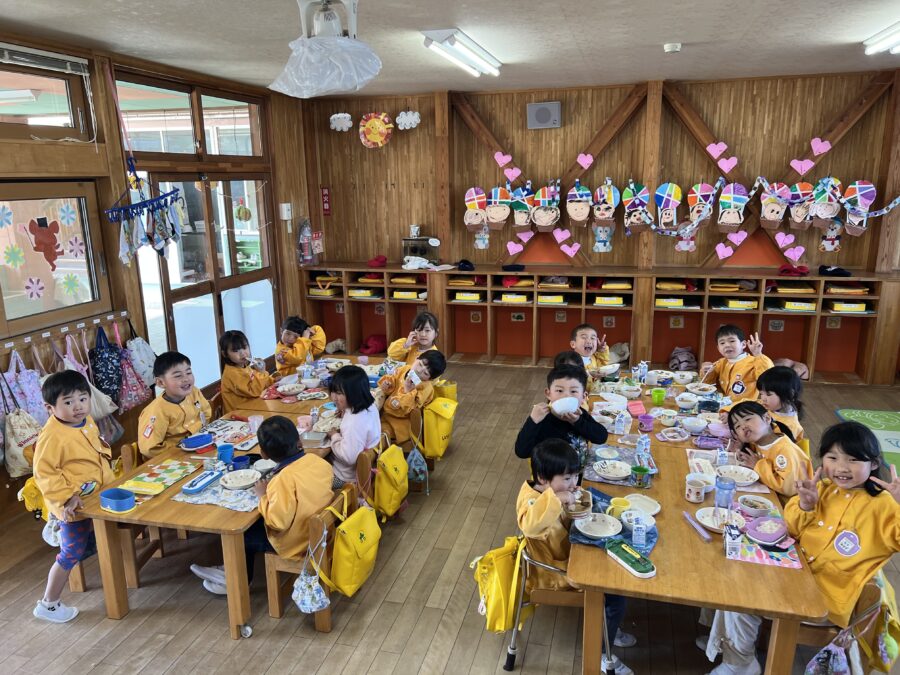 給食もにこにこひろばのグループで食べました。