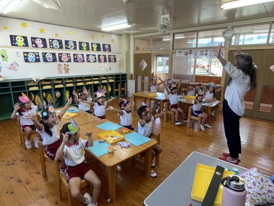英語講師の先生にハロウィンのお話を聞きながら楽しくしましたよ。