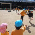 お天気も良く、グループのお友だちと園庭で体操をした後は、ミニ運動会をしました。