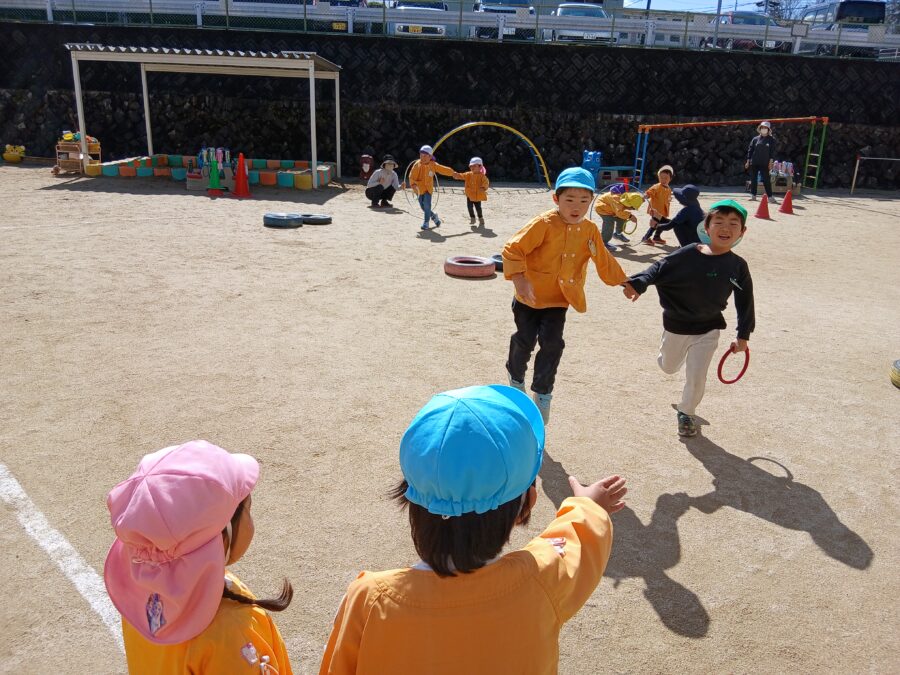 お兄さんお姉さんが小さい子を気遣い手を引いてくれる姿や、お友だちに「がんばれ~」と声をかけてくれる子。