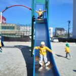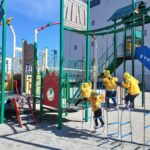 公園の遊具でたくさん遊び、笑顔いっぱいの子どもたち。