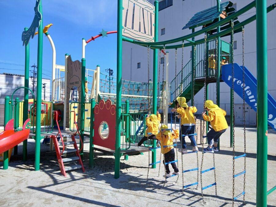 公園の遊具でたくさん遊び、笑顔いっぱいの子どもたち。