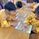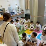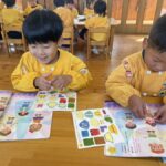 今日の年中組さんは、毎月取り組んでいる月刊誌をみんなで読みました。