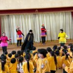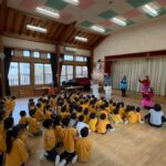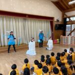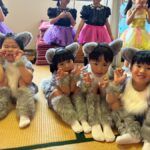 今月のお楽しみは、すみれさんが発表会で演じた「北風と太陽」を先生達で披露しました。