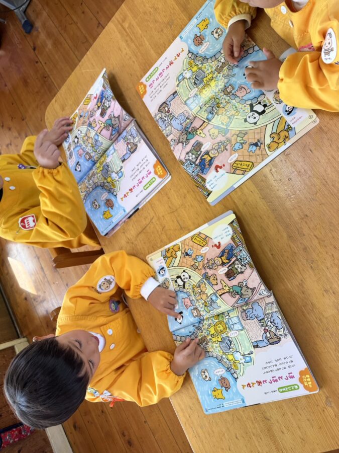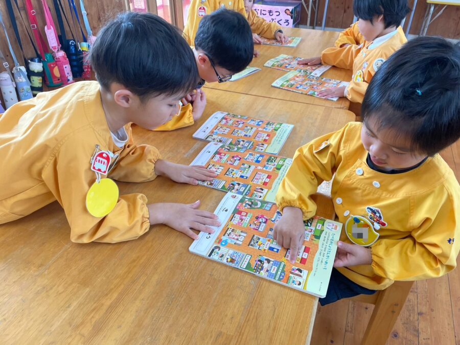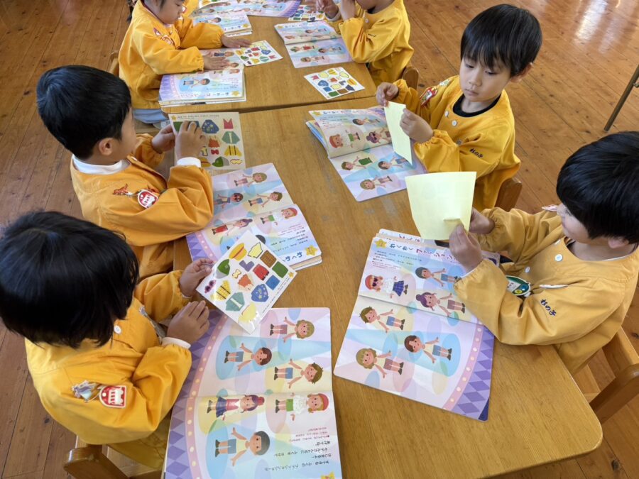 今日の年中組さんは、毎月取り組んでいる月刊誌をみんなで読みました。